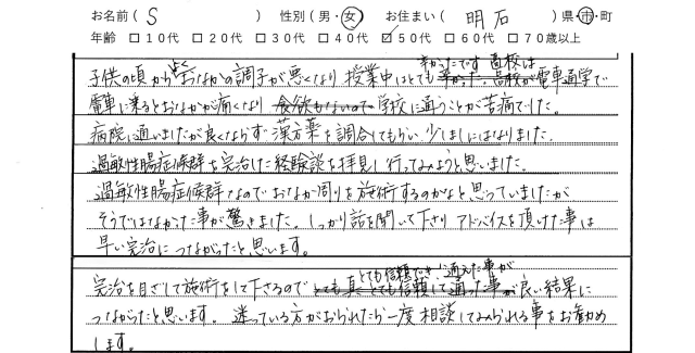 S様 / 女性 / 明石市 / 50代