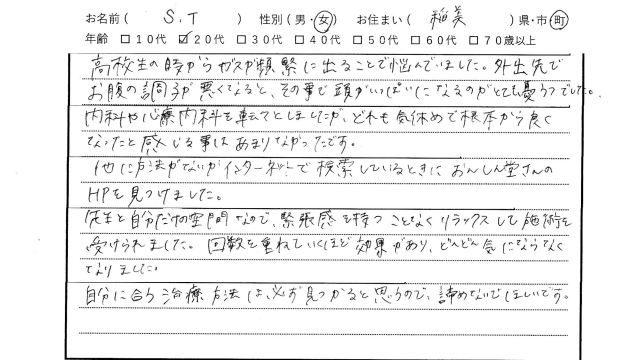 高校生の時からガスが頻繁に出ることで悩んでいました。